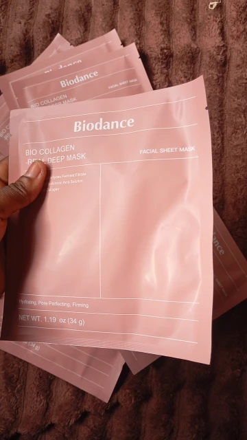 Ceux-ci n’ont pas la même forme ni la même odeur que les masques au collagène Biodance que j’ai achetés directement chez Biodance. Ils taillent beaucoup plus petit et ne couvrent pas complètement le visage. L'odeur est vraiment désagréable, et très différente du produit vendu directement par cette marque. Je ne pense pas qu'il s'agisse de produits Biodance authentiques.